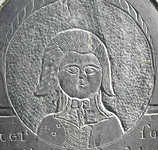 Symmetrical winged skulls date from 1674 as the earliest detailed stone decoration in New England. The design was widely copied and, within a few years, was joined by a somewhat less macabre symmetrical winged face called a "soul-effigy," the stone cherubs of this website name. These low relief or intaglio designs were immensely popular and constitute the the preponderance of stone designs carved before the tree-urn revolution of 1800.