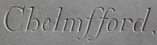 Long-s was usually paired with a regular s by most American carvers following a convention in German gothic. "Chelmsford" illustrates the way carvers differentiated between long-s and f. It appears that the carver almost put the cross bar on the l.