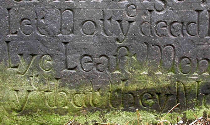 Thorn and long-S are letters dropped from English orthography in the early 1800s. Thorn was almost entirely restricted to the definite article but long S was widely used (See the verses). Þ is a letter in modern Icelandic and long-s is part of the German gothic font. Usage was always mixed. Many stones have both thorn-e and th-e definite articles.