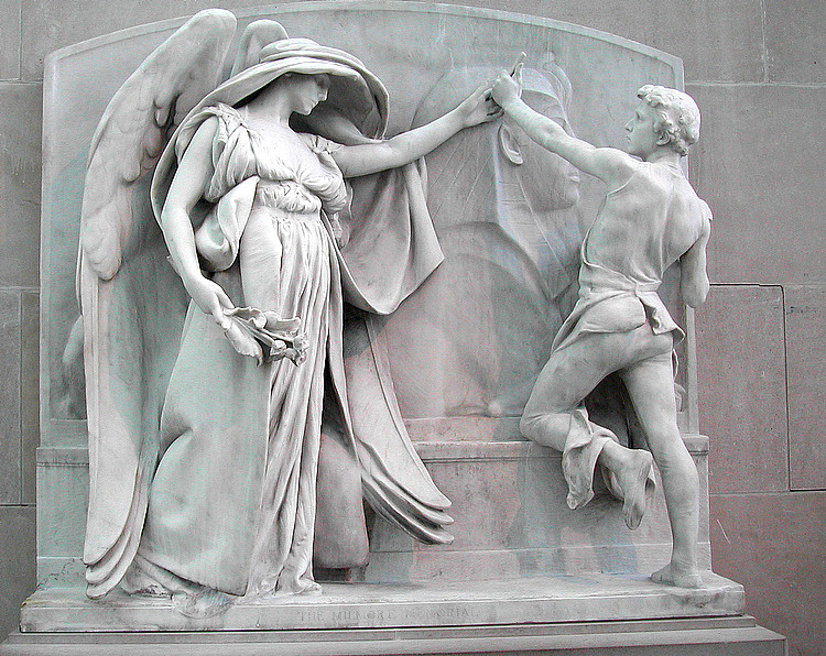 This is Milmore's sphinx monument to the Union dead of the Civil War in Mt Auburn Cemetery featured in the French sculpture. |